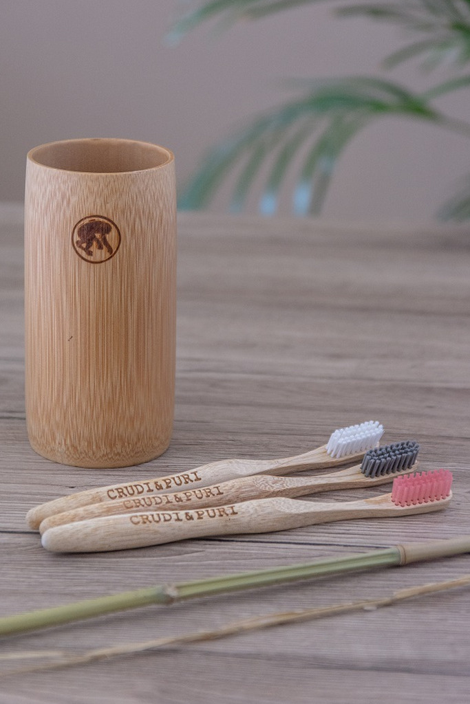 3 Spazzolini di bamboo + 1 Bicchiere grande di bamboo